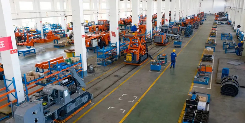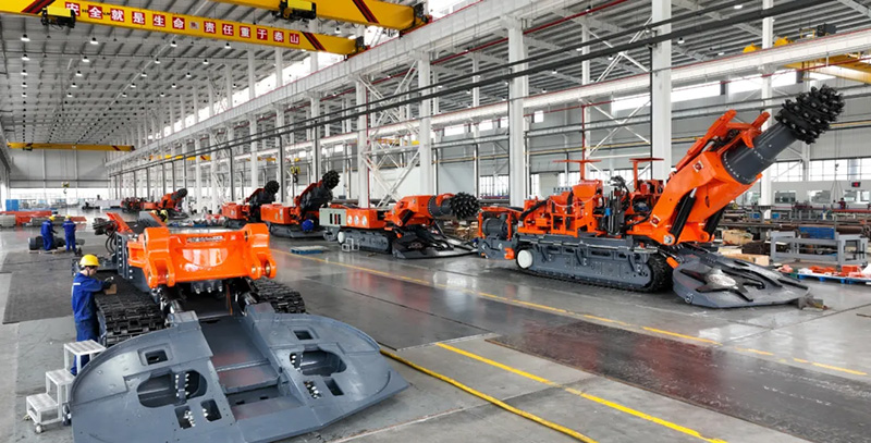 江西澳门金沙娱乐城秉持“安全、高效、环保”的宗旨打造装备一体化生产示范车间,已荣获“国家级绿色工厂”荣誉称号,其中A区主要生产煤矿的高端智能装备,主要包含:掘进机、掘锚机、液压锚杆钻车、巷道修复机、挖掘式装载机、钻装锚机组、挖锚装机组、岩巷钻装机组、液压掘进钻车等多种系列的产品,并通过了国家煤矿安全标准认证。