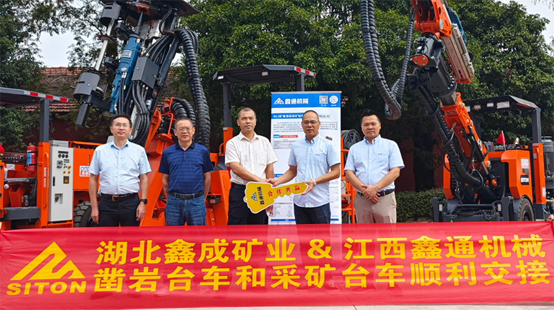 在展览会开幕式上,黄石市应急管理局及非煤矿山科室等领导出席此次交流会,会议公布了黄石市“智慧矿山”建设的进展,并且现场举办了阳新鑫成矿业与江西澳门金沙赌场矿用掘进台车装备与采矿台车装备的交接签约仪式。